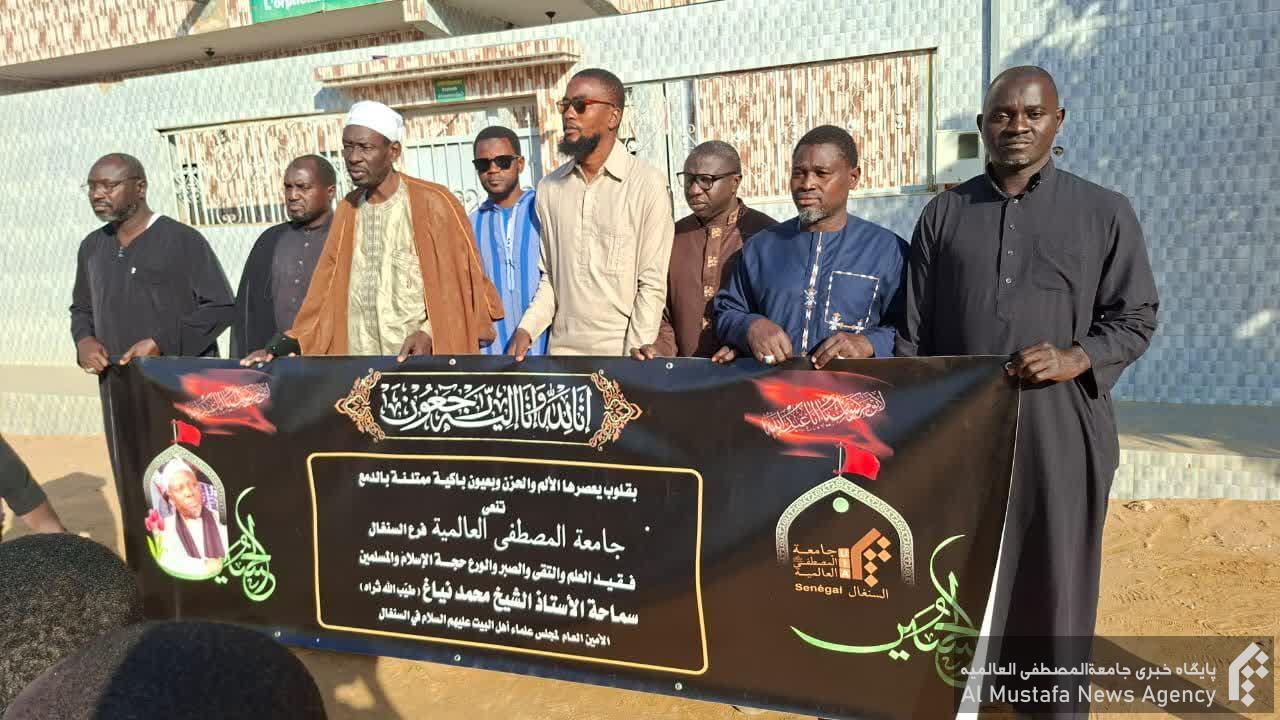 الخليفة العام لأتباع أهل البيت عليهم السلام في السنغال وإلى الحوزات العلمية وإلى كافة الشعب السنغالي العزيز برحيل العالم العامل الذي بذل عمره الشريف في خدمة طلاب العلم وخدمة مذهب أهل البيت عليهم السلام ونشر معارفهم، حجة الإسلام سماحة الشيخ محمد نياغ (طيب الله ثراه) الأمين العام لمجلس علماء أهل البيت عليهم السلام في السنغال.