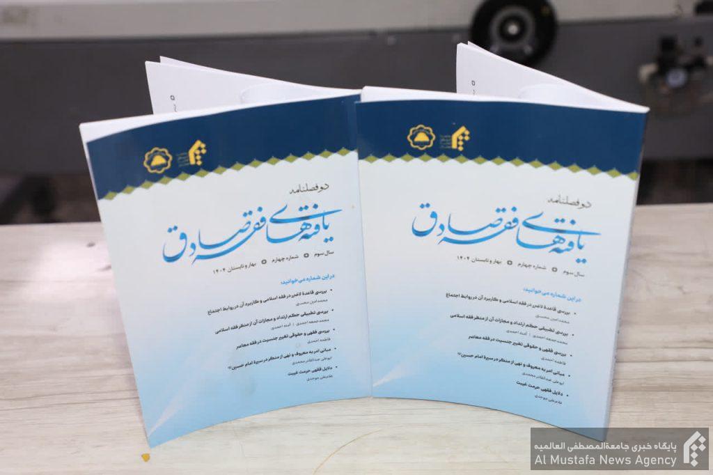 چهارمین شماره دوفصلنامۀ «یافته های فقهی و مبانی حقوق اسلامی» از نشریات نمایندگی جامعة المصطفی(ص) افغانستان با همکاری مدرسه علمیه جعفریه ولایت هرات که از مدارس پیوسته نمایندگی است از سوی نمایندگی جامعة المصطفی افغانستان در بهار و تابستان ۱۴۰۴، چاپ و منتشر شد.