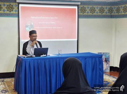 در راستای آشنایی فراگیران نمایندگی تایلند با فنون نویسندگی، کارگاه «شیوه نگارش پایان نامه و مقاله به زبان تائی و علائم مربوطه» در مدرسه تابعه المهدیه نمایندگی برگزار شد. در این کارگاه حجت الاسلام شیخ عمران پیچایرات؛ معاون پژوهش نمایندگی، ضمن تبیین شیوه های نگارش و به کارگیری علائم مربوطه، مواردی را به صورت عملی به طلاب آموزش دادند و به سئوالات ایشان پاسخ گفتند.
