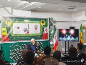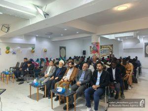 همخوانی قرآن کریم، ارائه مقاله تحقیقی از سوی یکی از طلاب، سخنرانی، اجرای سرودهای سلام یا مهدی، قرائت بیانیه طلاب در همبستگی و حمایت از ایران اسلامی به زبان فارسی، بیان خاطراتی از زندگی در ایران از سوی استادان دانشآموخته المصطفی، نمایش کلیپها و تصاویری از جلوههای هنر مهدوی و فرهنگ ایرانی و جشنهای میلاد در ایران و مسجد جمکران و اهدای هدایا و لوحهای تقدیر به برگزیدگان مسابقه ادبی اعتکاف و دوره زبان فارسی از برنامههای این مراسم بود.