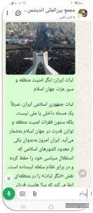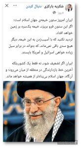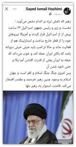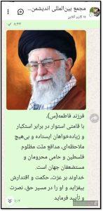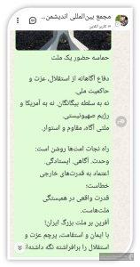 این کاربران ضمن دعا برای حفظ امنیت، عزت و ثبات ایران اسلامی، ایستادگی ملت مسلمان ایران در برابر سلطهطلبی و زیادهخواهی قدرتهای استکباری را مایه افتخار جهان اسلام دانسته و تأکید کردهاند که وجود رهبری حکیم و شجاع، نعمتی بزرگ الهی برای ملت ایران و سرمایه راهبردی برای امت اسلامی به شمار میرود.