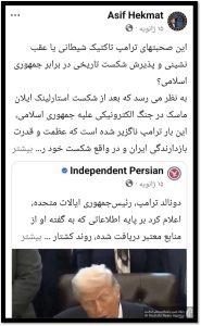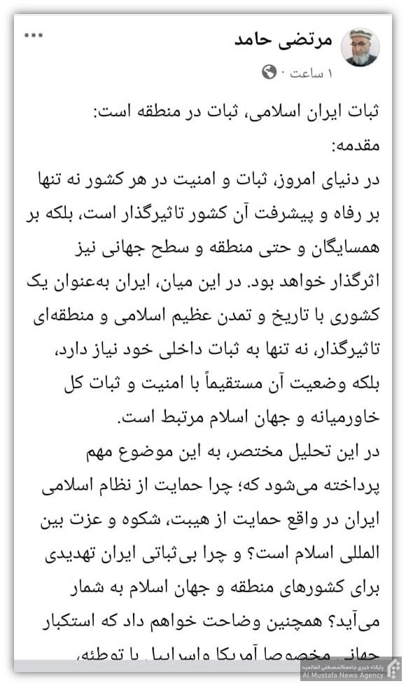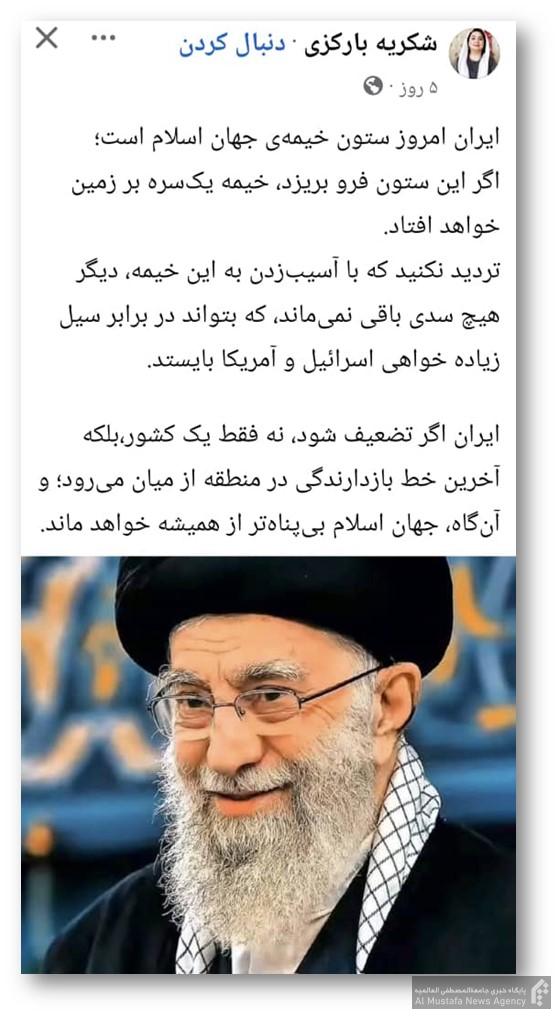 در این میان، جایگاه جمهوری اسلامی ایران بهعنوان کشوری مستقل، مقتدر و اثرگذار در معادلات منطقهای و جهان اسلام، بارها مورد توجه کاربران افغانستانی قرار گرفته است. آنان عزت و اقتدار ایران اسلامی را نتیجه پایبندی به اسلام، مقاومت در برابر استکبار و تبعیت از رهبری دینی دانسته و حمایت از نظام اسلامی را وظیفهشرعی و الهی قلمداد کردهاند.