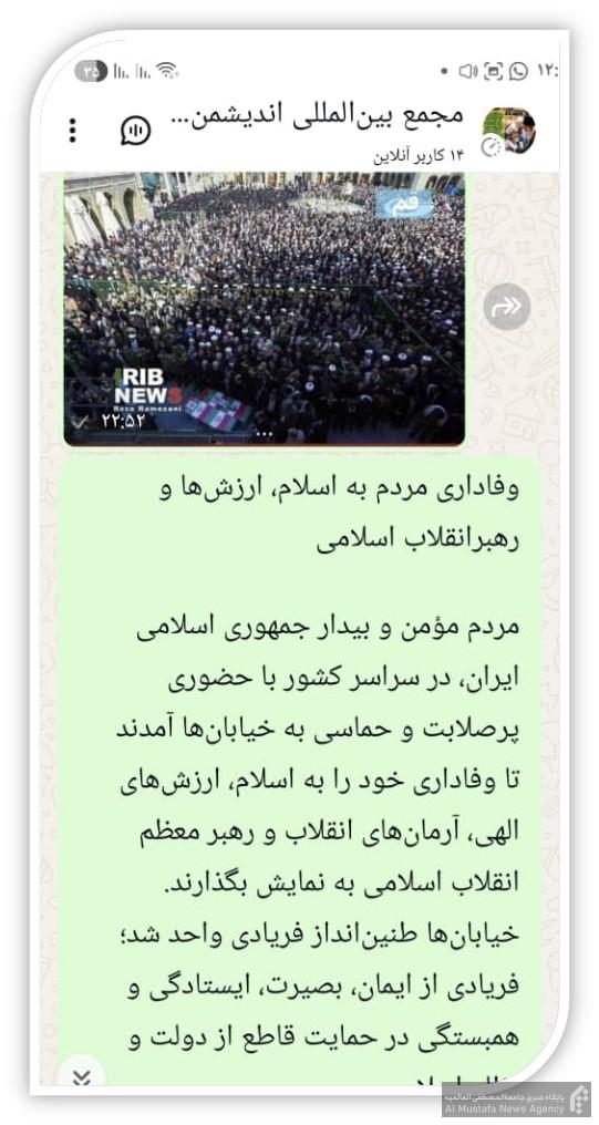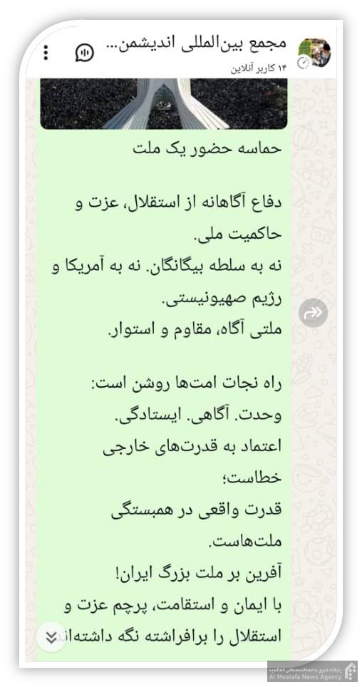 برخی از مطالب در قالب عکس، در ارتباط با تحولات اخیر و پیرامون اغتشاشگران مزدور و حامیان آنها، و نیز در حمایت از ملت بزرگ ایران اسلامی و رهبر فرزانه، حکیم و شجاع آن، در گروه بینالمللی «اندیشمندان و فرهیختگان امت واحده» منتشر شده است.
