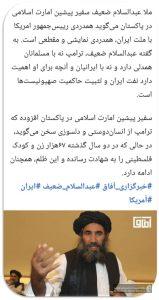 در همین راستا، تماسها و گفتوگوهای دیپلماتیک میان مقامات دو کشور نیز نشاندهنده سطح مناسب تعامل و تفاهم متقابل بوده است؛ بهگونهای که در تماس تلفنی و گفتوگوهای انجامشده، جناب آقای دکتر عراقچی، وزیر محترم امور خارجه جمهوری اسلامی ایران، از موضع سنجیده و مسئولانه امارت اسلامی تقدیر و تشکر به عمل آوردهاند.
