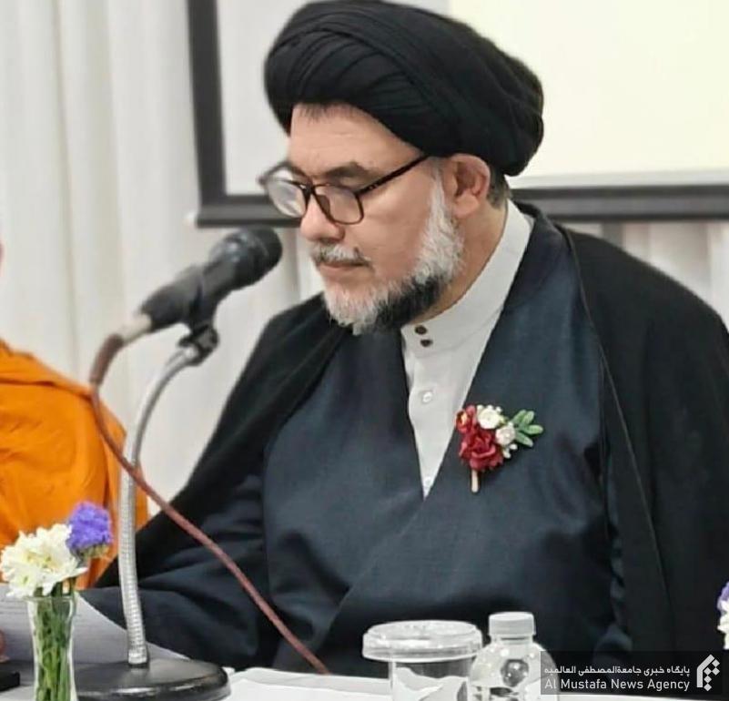 در ابتدای این جلسه و پس از تلاوت آیاتی چند از کلام الله مجید، حجت الاسلام سید هبت الله صدرالسادات؛ مدیر منطقه ای المصطفی در تایلند ضمن خوش آمد گویی به شرکت کنندگان در این رویداد فرهنگی، مقاله خود را تحت عنوان (منجی موعود نقطه مشترک ادیان و مذاهب) ارائه کرد و گفت: بر خلاف تئوریهای مختلف در جامعه شناسی شامل تئوری های خطی و تکاملی اندیشمندانی همچون اگوست کنت و نیز تئوری های ادواری افرادی مانند ابن خلدون و سوروکین و تئوری های ستیز برخی مانند مارکس و هگل و فوکویاما، ادیان در ترسیم آینده ای روشن و توام با رفاه و آسایش و صلح و معنویت برای بشریت که توسط منجی وعده داده شده در ادیان محقق می شود اتفاق نظر دارند.