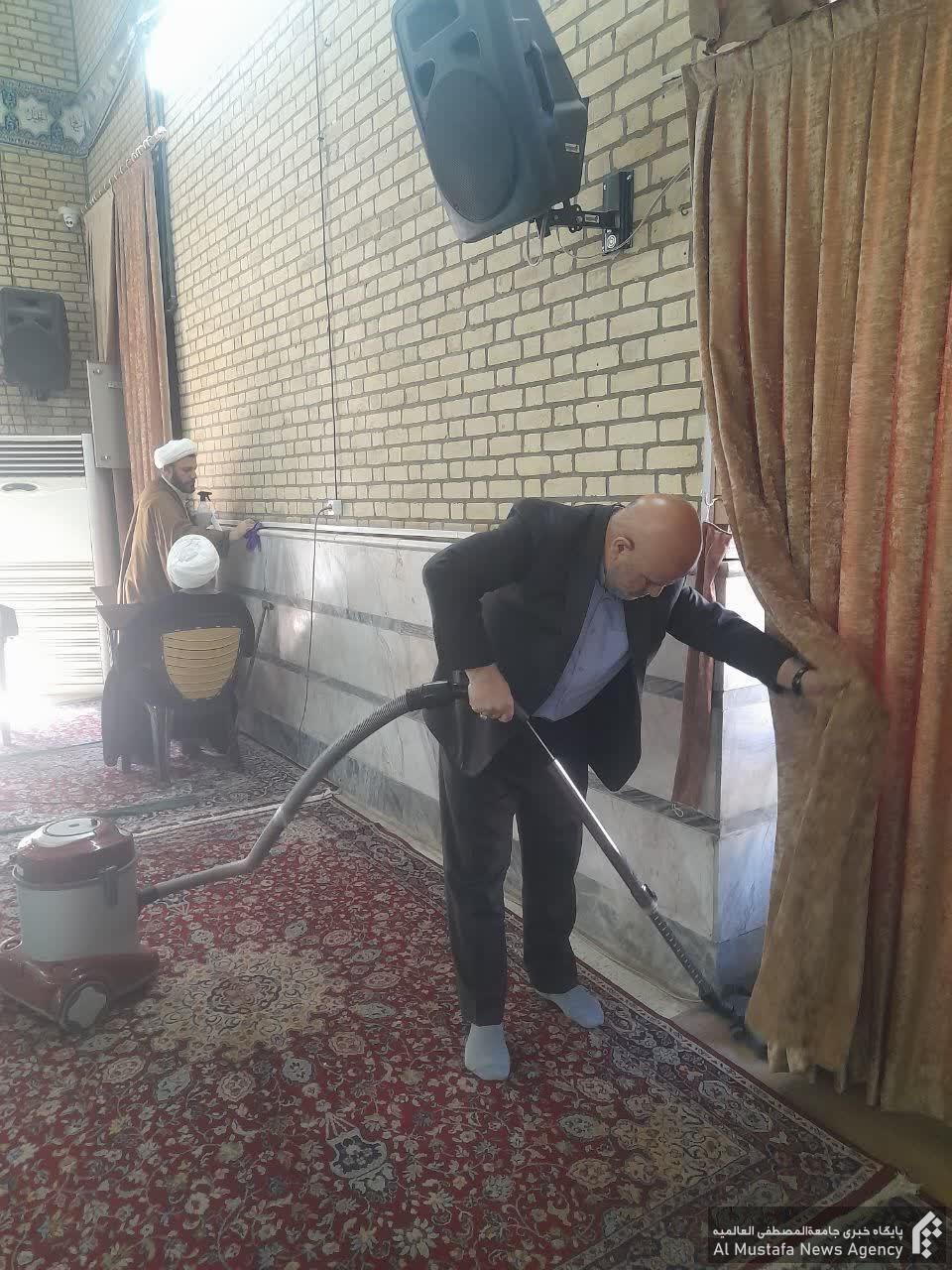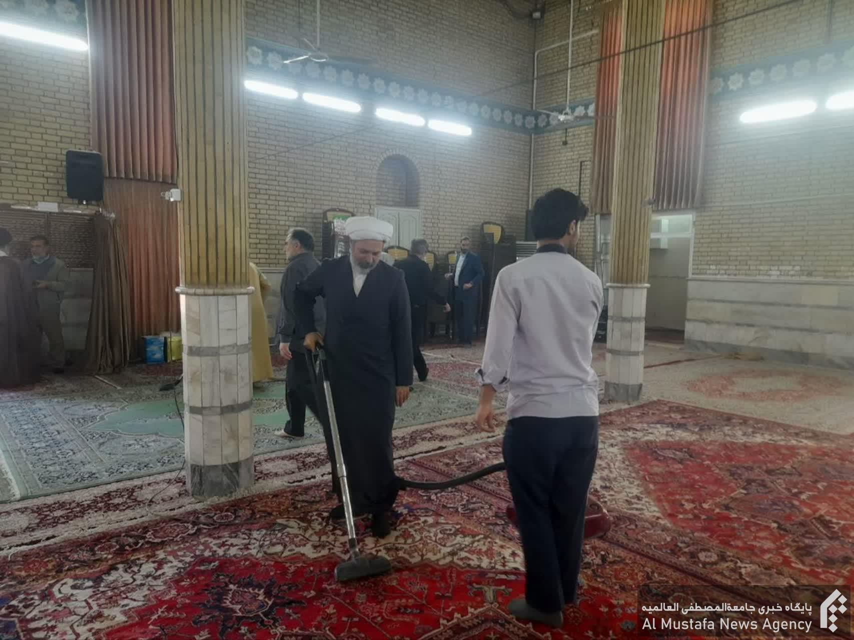 این مراسم که بعد از اقامه نماز جماعت ظهر و عصر انجام گرفت، فرصتی بود برای زدودن غبار از خانه دوست و آمادهسازی این مکان مقدس برای میزبانی از روزهداران در ماه مهمانی خدا.