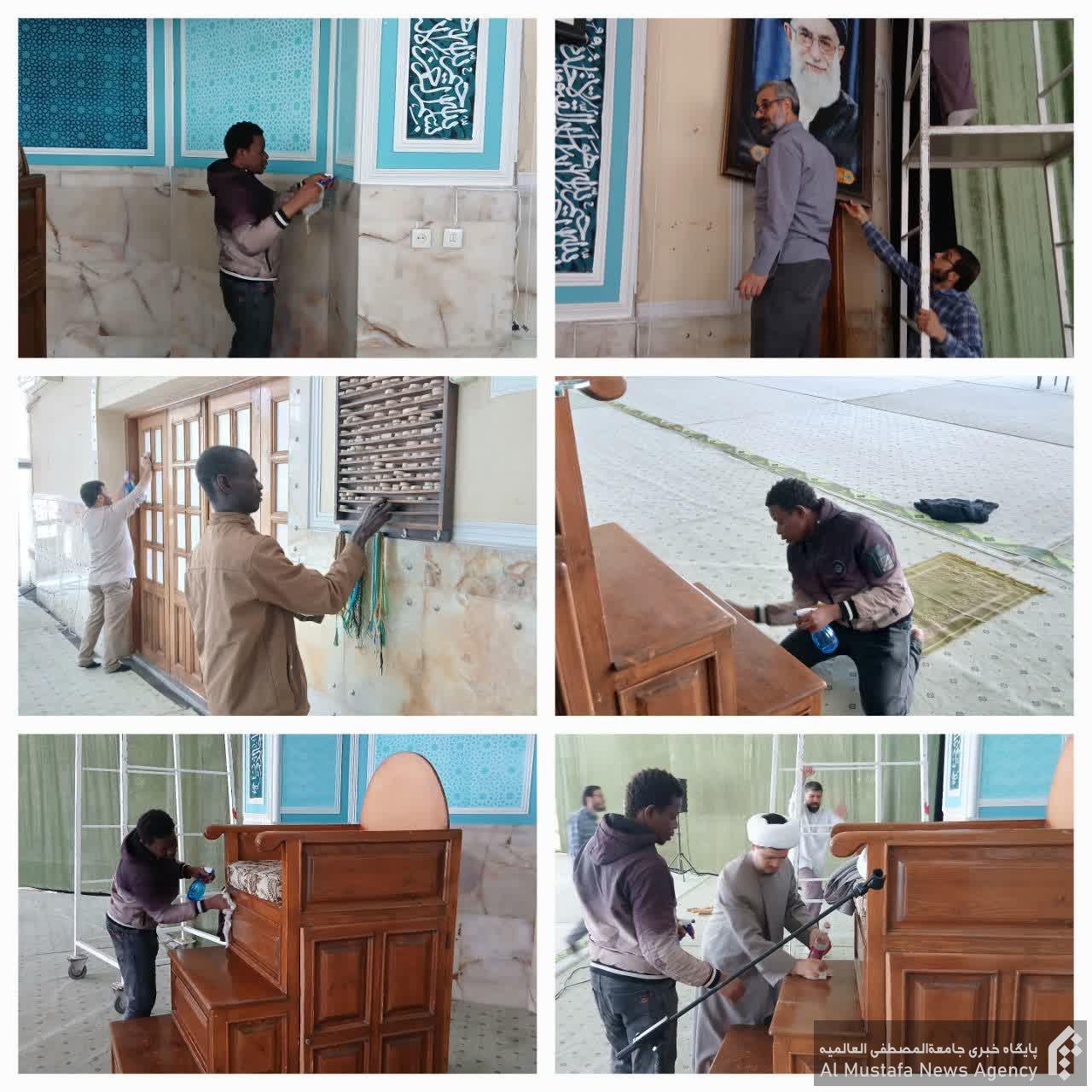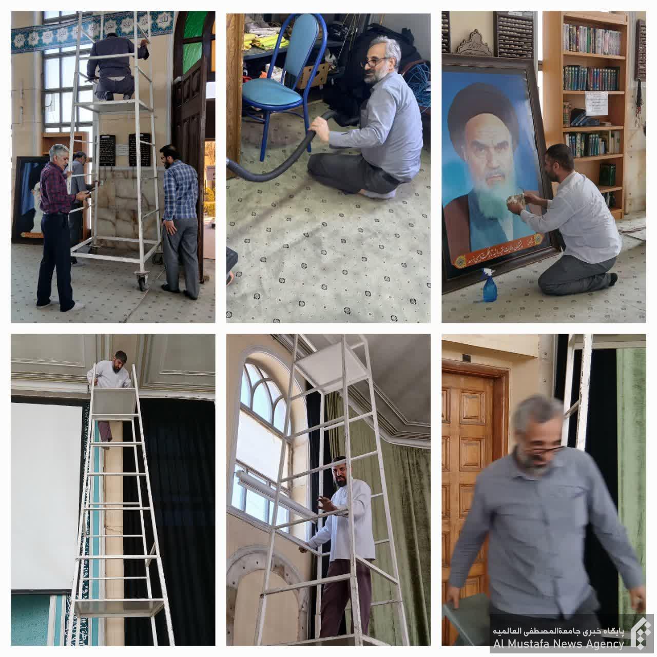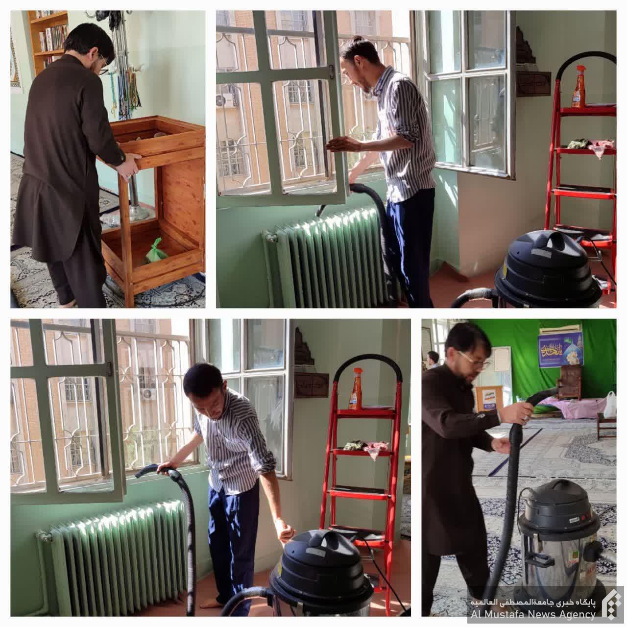 در این مراسم، جمعی از طلاب، کارکنان و اساتید مجتمع آموزش عالی علوم انسانی اسلامی به غبارروبی حسینیه قدس و نمازخانه اقامتگاه تربیتی غدیر پرداختند و خود را برای ورود به ماه رمضان آمده نمودند.