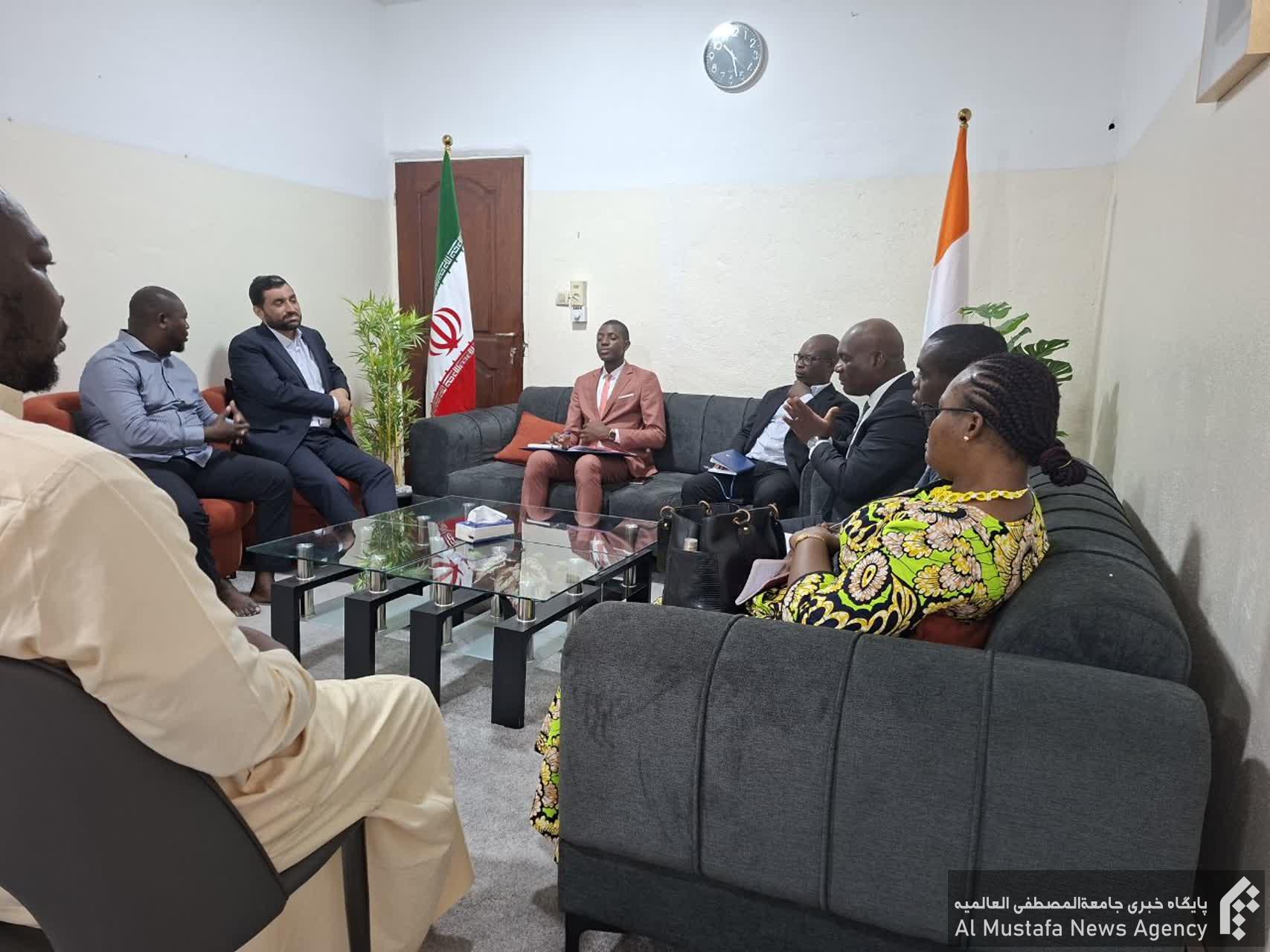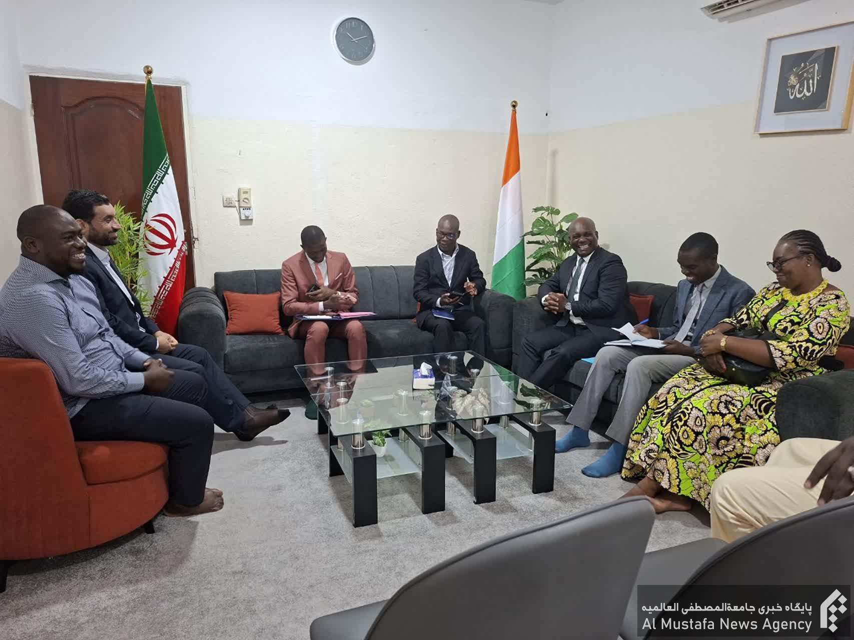 در این دیدار دکتر ابراهیمی رئیس دانشگاه ضمن معرفی دانشگاه و ارائه خدمات آموزشی به جوانان و نوجوانان کشور ساحل عاج بر همکاری مشترک با این نهاد حقوق بشری تاکید و خدمات رفاهی و آموزشی به مدارس اسلامی کشور ساحل و حفر ۱۷۰ عدد چاه آب شرب برای مناطق محروم گزارشی ارائه نمود.