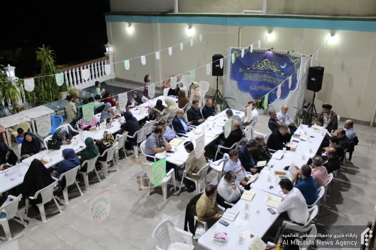 این مراسم با حضور طلاب و اساتید المصطفی و سفیر جمهوری اسلامی ایران، اعضای سفارت و ایرانیان مقیم، به همراه ضیافت افطار و جلسه جزءخوانی قرآن کریم برپا شد.
