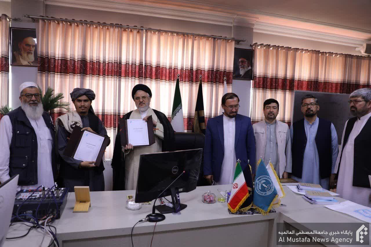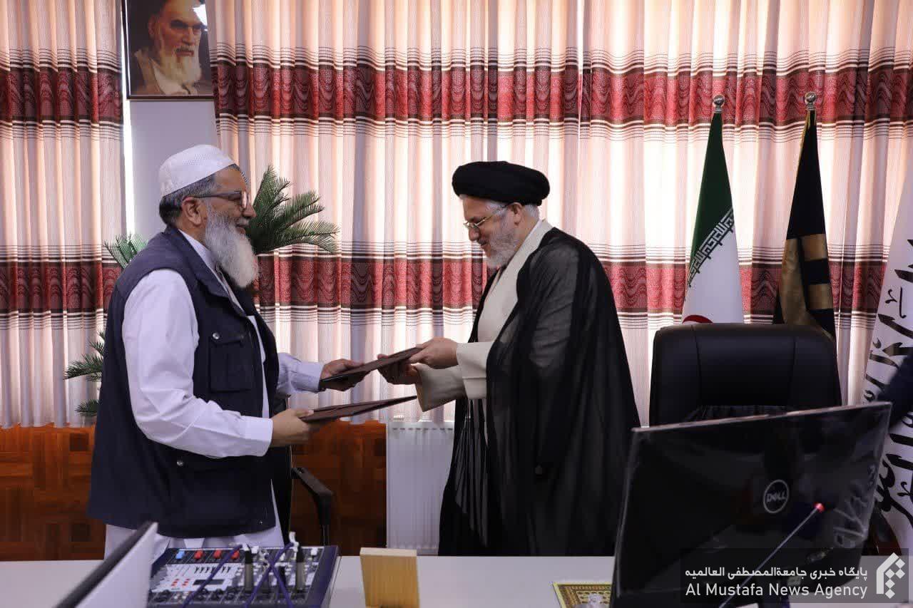 تفاهمنامه همکاریهای علمی و آموزشی بین نمایندگی جامعه المصطفی العالمیه در افغانستان و وزارت ترانسپورت و هوانوردی ملکی افغانستان با حضور حجت الاسلام و المسلمین سید عبدالحمید ثابت، رئیس نمایندگی جامعه المصطفی در افغانستان و مولوی محمد موسی غزنوی رئیس منابع بشری وزارت ترانسپورت و هوانوردی ملکی افغانستان به امضا رسید.