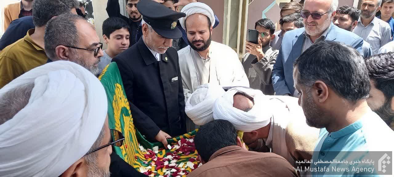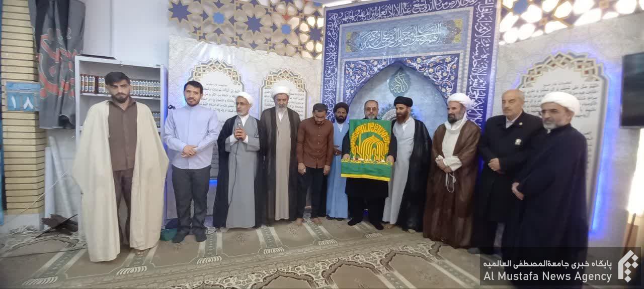 در بدو ورود خدام عزیز به نمایندگی جامعةالمصطفی، طلاب محترم با گل و اسپند به استقبال این هیئت رفته و تا مزار شهدای گمنام مدفون در نمایندگی ایشان را مشایعت نمودند.
