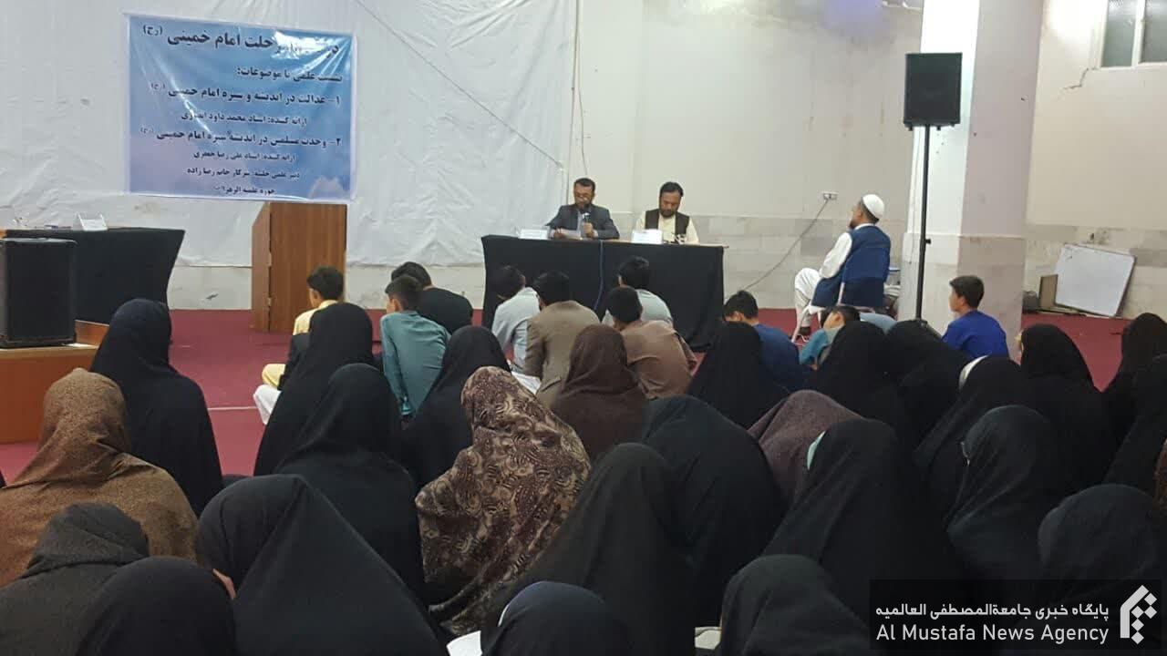 توسط مدارس پیوسته و همکار نمایندگی جامعه المصطفی العالمیه در افغانستان، نشست های علمی« پیشرفت علمی در اندیشه امام خمینی(ره)»، «نظم در اندیشه و رفتار امام خمینی (ره)»، «جایگاه بانوان در اندیشه امام خمینی(ره)»، «عدالت اجتماعی در اندیشه و سیره امام خمینی(ره)» و «نقش امام خمینی (ره) در وحدت مسلمین» برگزار شد.